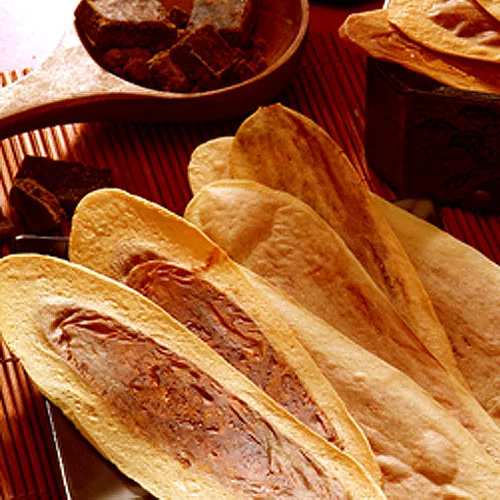 超薄餅身與黑糖的獨特焦香,餅身幾乎齒尖稍用力到就會碎開的程度,