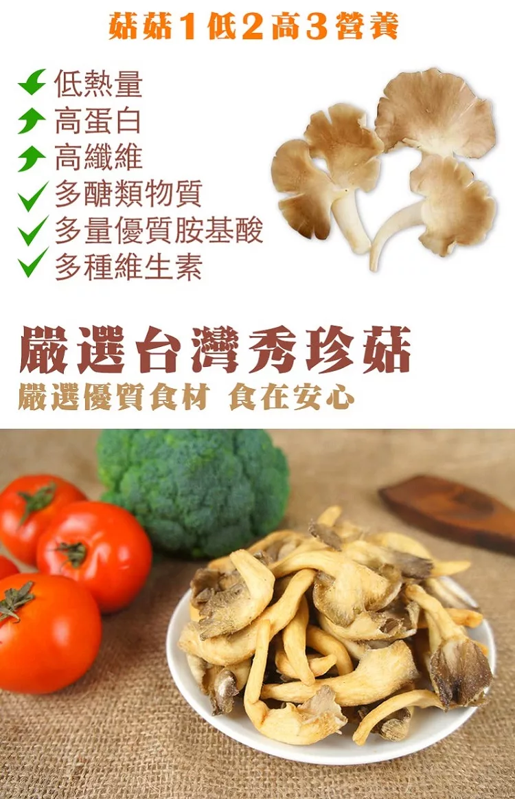 商品描述: 【午後小食光】菇菇酥-原味秀珍菇50g/包