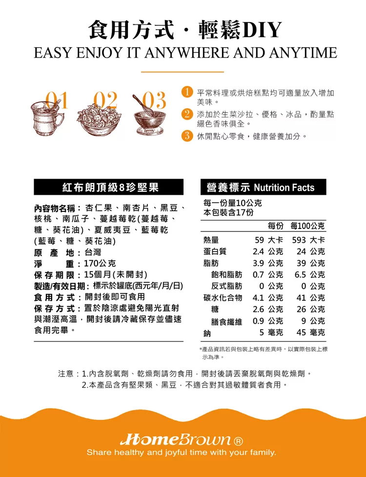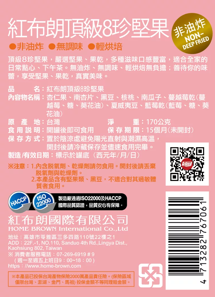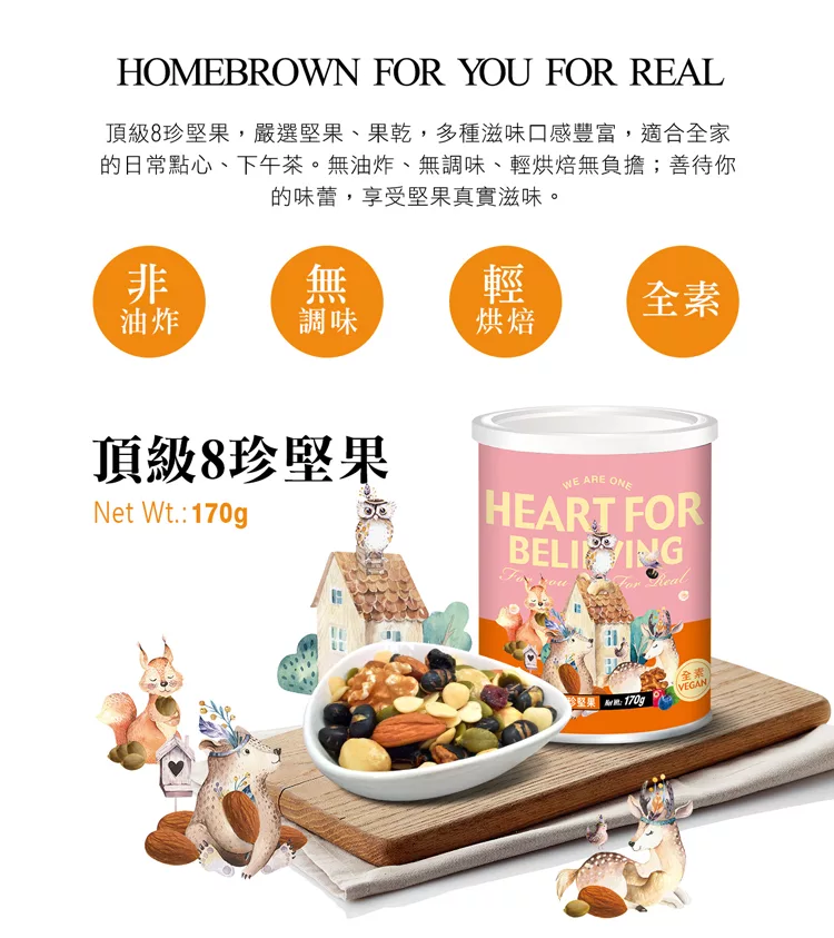 商品說明: 《紅布朗》We Are One頂級8珍堅果(170g/罐)