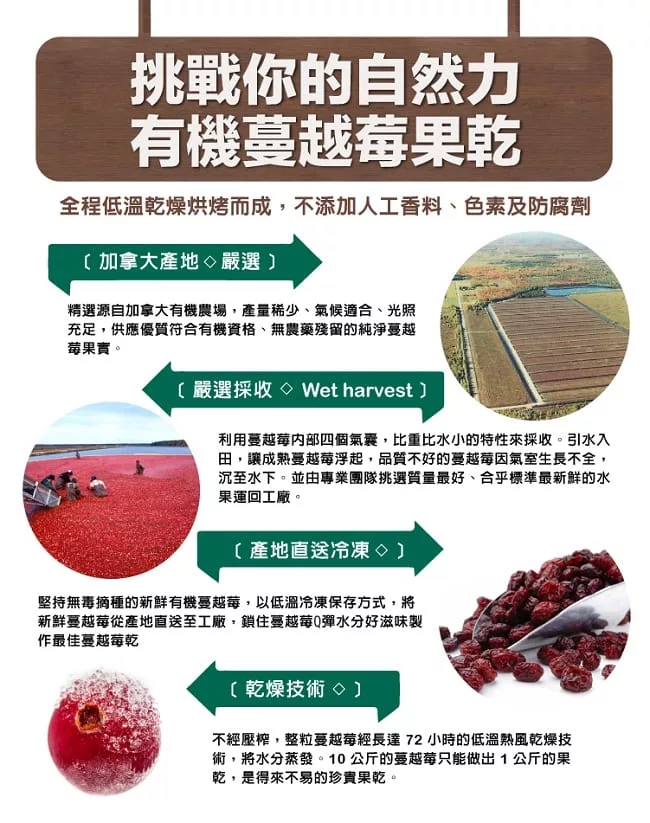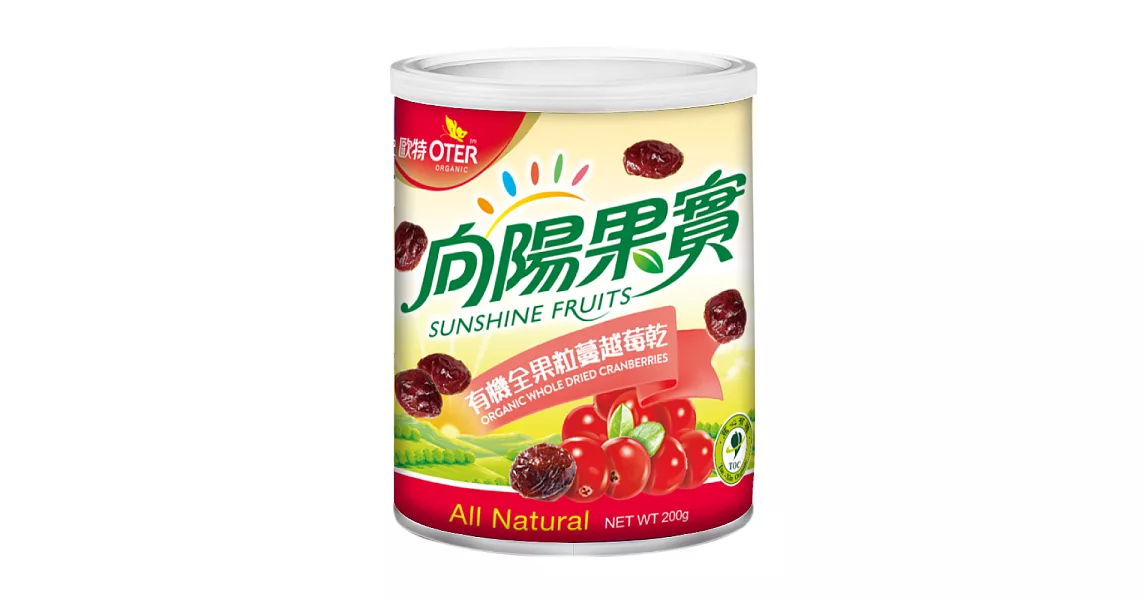 商品描述: 【歐特】有機全果粒蔓越莓乾 (200g/罐)