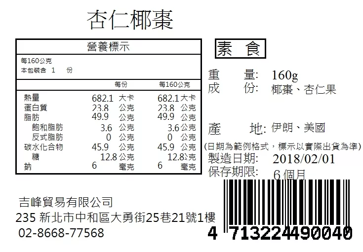 商品描述: 【午後小食光】杏仁堅果椰棗乾 160g