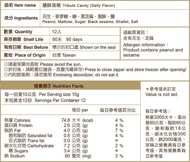 →→→→更多詳細”《聖祖》鹹酥貢糖(12入-包)”介紹請點我