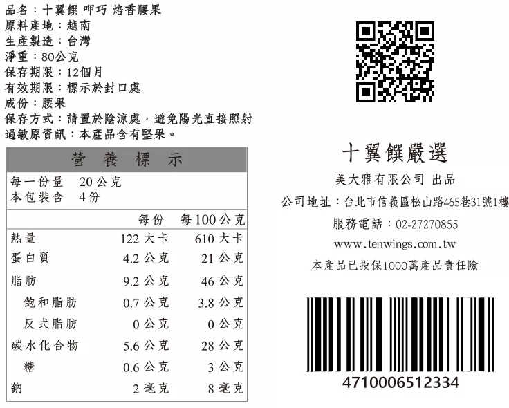 零食哪裡買推薦-【十翼饌】呷巧焙香腰果 (80g)哪裡買